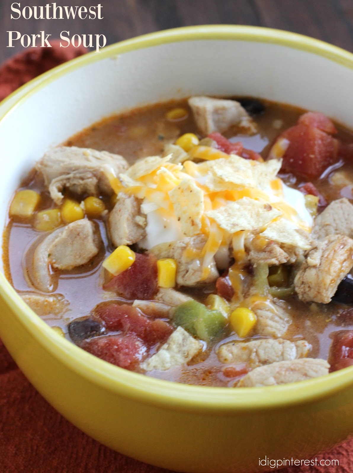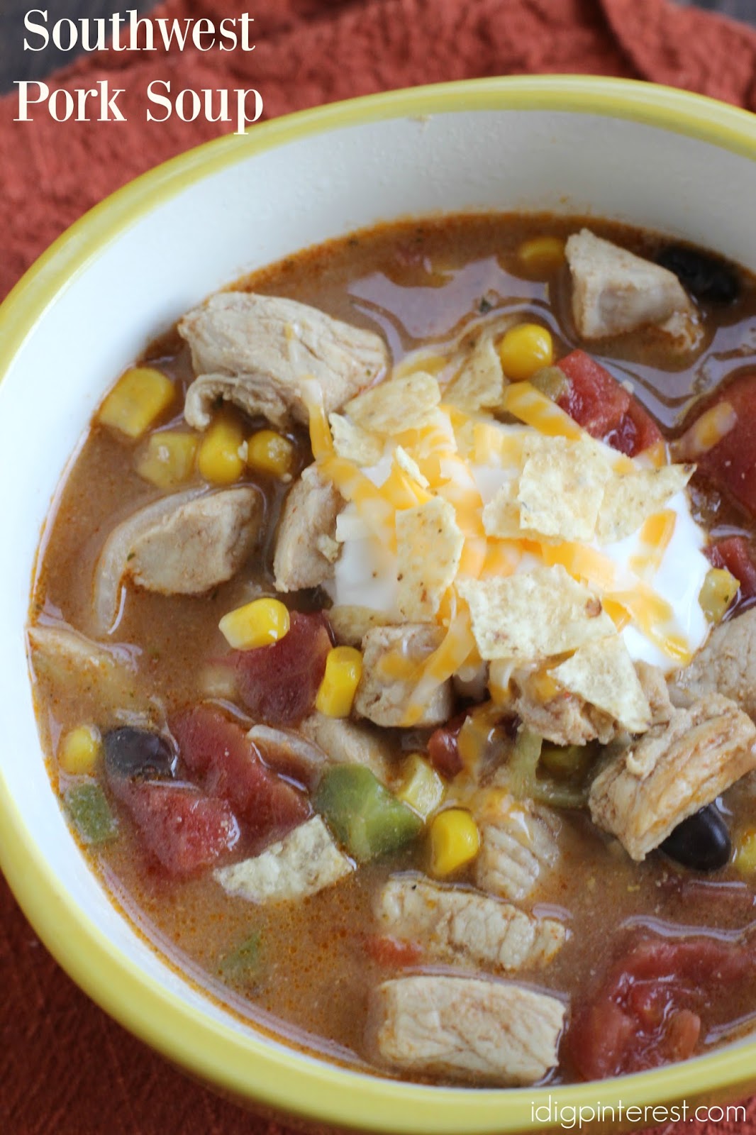 If I had a dollar for every scatterbrained moment I have, I’d be rich! So I knew I wanted to make a southwest soup of some sort this particular evening, and I had every intention of using chicken, so I thawed a frozen baggie of meat from the freezer, totally thinking it was chicken. (Note to self: labeling the baggies may be helpful). When I went to start dinner, I did the palm to the face thing when I realized it was pork. But, then I got really happy and thanked myself for this absentminded “mistake” as I was putting it all together and smelling the delicious aroma. This soup was meant to include pork! Sure, chicken or turkey would be lovely too, but the pork was everything it needed and more to round it out and give it just the right substance.