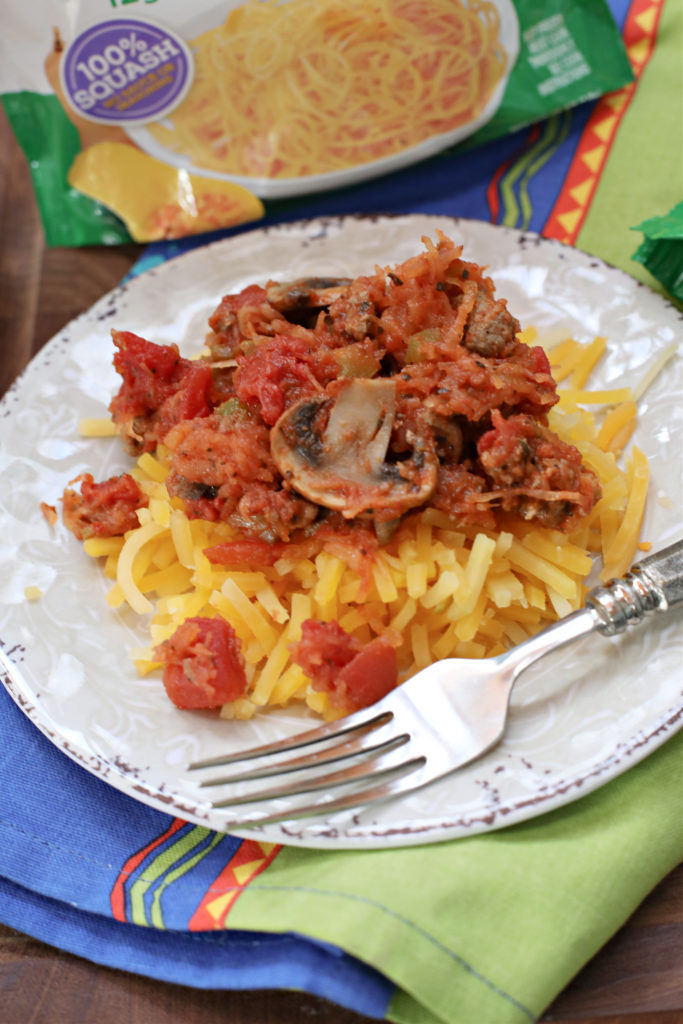 - Steam Green Giant® Veggie Spirals® Spaghetti Squash according to package directions, then gently shred it with a fork and fold it into the sauce mixture.