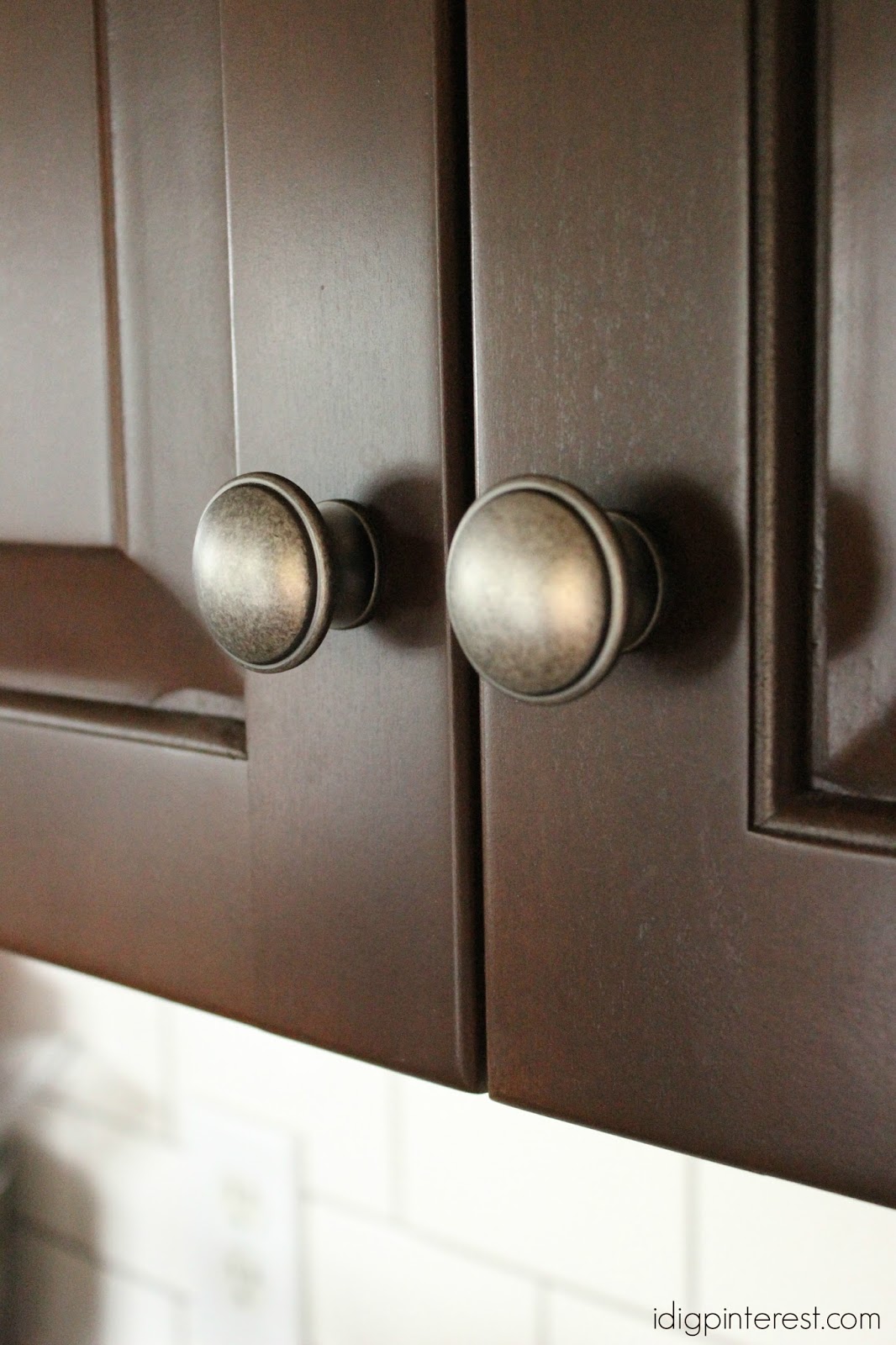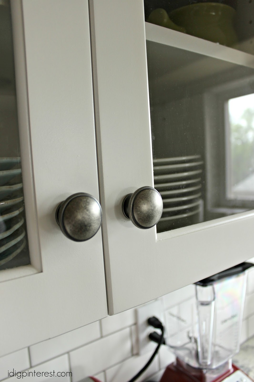 We were so excited to get rid of the tiny wooden “belly button knobs” as we called them. You can see what they looked like in the “before” photos above. Oh, what a difference pretty “cabinet jewelry” makes!