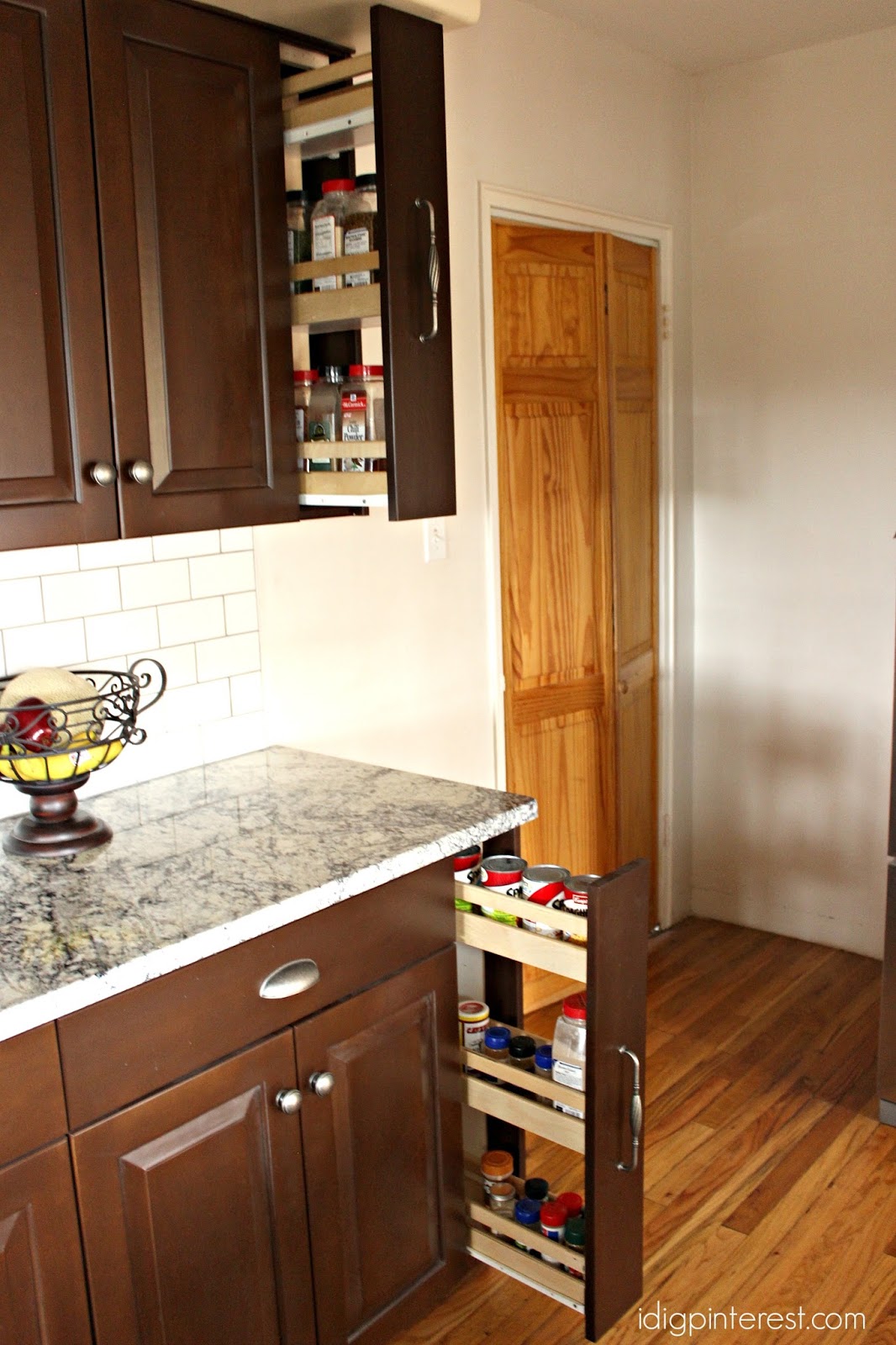 We’re not drinkers, so I knew I wanted to get rid of those wine cubbies, but I owe the credit for the genius solution to my sister, who suggested turning it into spice drawers. Ding, ding, ding! Winner!