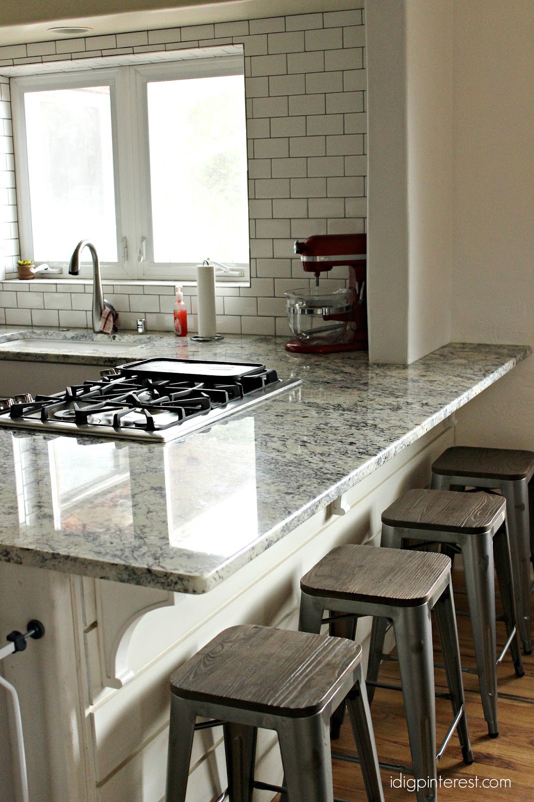I knew I ultimately wanted a flat bar space area that the kids could sit up to at their level, with stools that tucked nicely and almost completely under the counter overhang.